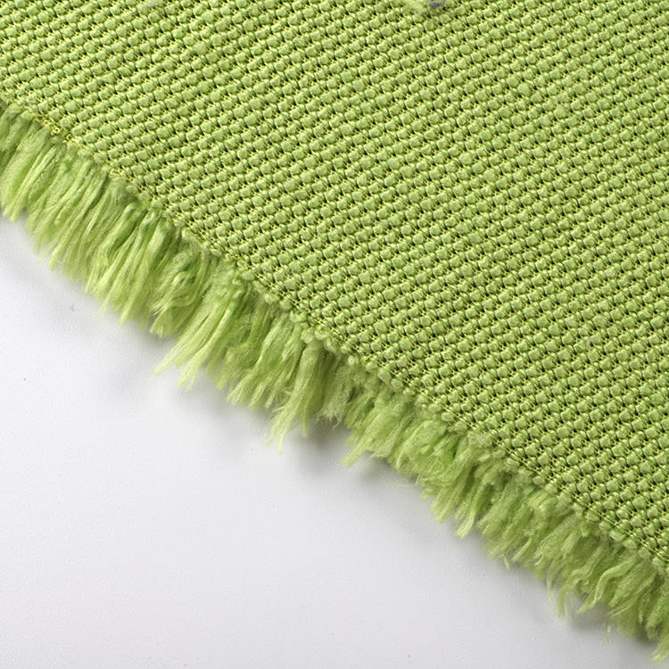 Ideal untuk berbagai aplikasi termasuk karpet, karpet, dan tikar, kain kami diwarnai dengan warna-warna solid yang tetap cerah dan memudar dari waktu ke waktu, memastikan keindahan yang langgeng di lingkungan apa pun. Dengan jumlah pesanan minimum 500kg per warna, kami mengakomodasi persyaratan produksi skala besar dan proyek yang dipesan lebih dahulu dengan mudah.