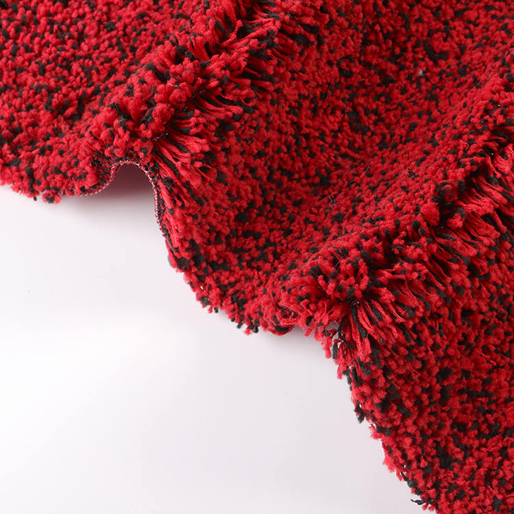 Dibuat dari 100% poliester, kain ini menawarkan berat 850gsm, memastikan nuansa mewah dan substansial. Tinggi tiang 10mm menambah kemewahannya, menjadikannya pilihan yang sangat baik untuk berbagai aplikasi, termasuk karpet, karpet, dan tikar mandi.