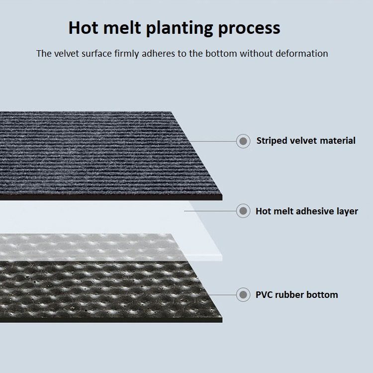 Jenis konstruksi MAT terikat, memberikan daya tahan dan umur panjang yang ditingkatkan. Bahan punggung PVC-nya menambah lapisan stabilitas ekstra, menjadikannya non-slip dan ideal untuk area lalu lintas tinggi. Matras tersedia dalam beberapa opsi ukuran - 40*60cm, 50*80cm, 60*90cm, atau dimensi khusus - memungkinkan Anda untuk memilih kesesuaian yang sempurna untuk kebutuhan Anda.
